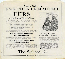An advertisement in October 8, 1919, offered satin blouses at $6.98, trimmed hats for dress wear starting at $7.98, and linoleum from $1.69-$3.50 per square yard. In 1925, Wallace's declared as their standard "Always Reliable" (meaning, no seconds or irregular merchandise). By 1941, they boasted "you can dress the family better for less at Wallace's." As suburbanization began to take its toll on downtown Schenectady, Wallace's reached out by declaring itself "The Shopping Center of the Mohawk Valley."